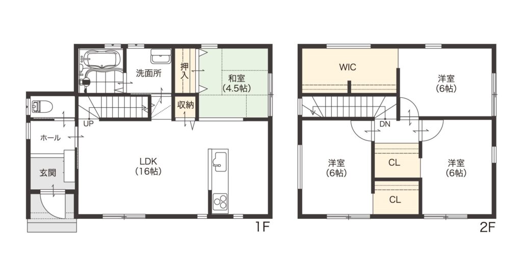 全洋室が6帖あるゆったりプラン!プライベート時間を思う存分楽しめます!リビング階段で家族が繋がる住まいに!