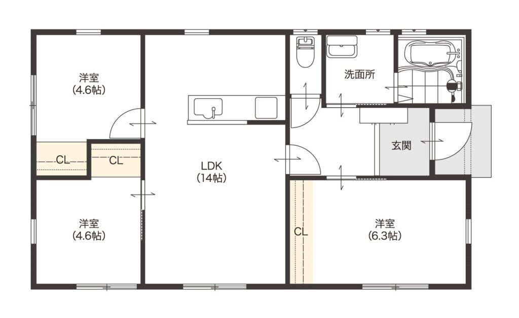 各居室に収納をたっぷり設けたプラン。自分の部屋に収納しておきたい趣味の物なども整理整頓がラクチン!