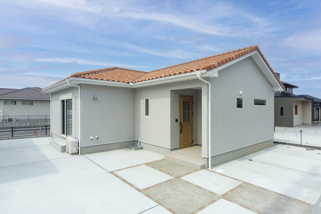 海沿いの立地にも配慮し、風に強く耐久性に優れた洋風防災瓦を採用。デザイン性と安心感を兼ね備えています。
