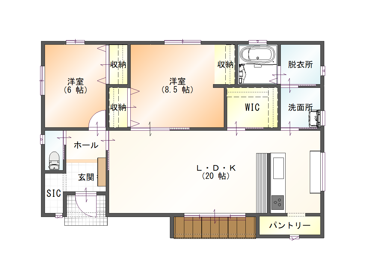 キッチン・洗面・浴室をまとめた効率的な配置で、毎日の移動もスムーズ。