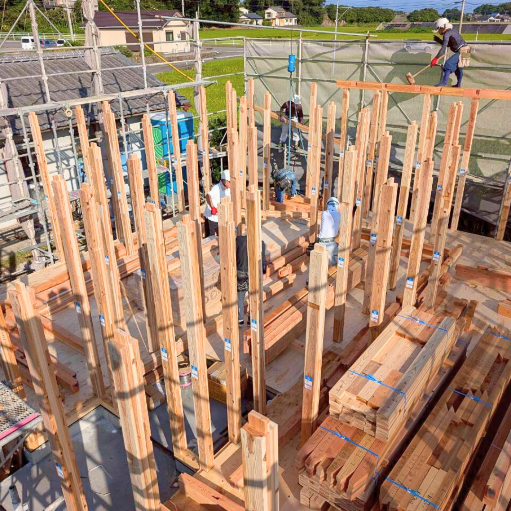 住宅の建築において、柱や梁など建物の基本構造が完成し